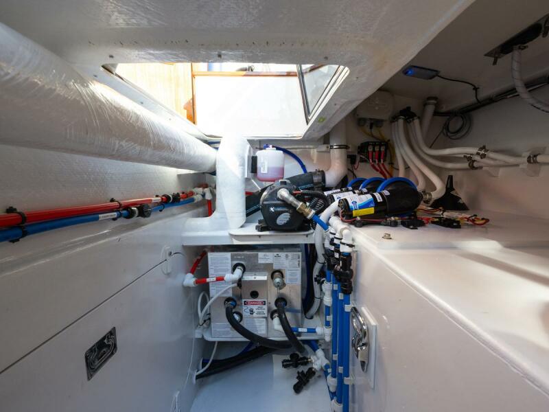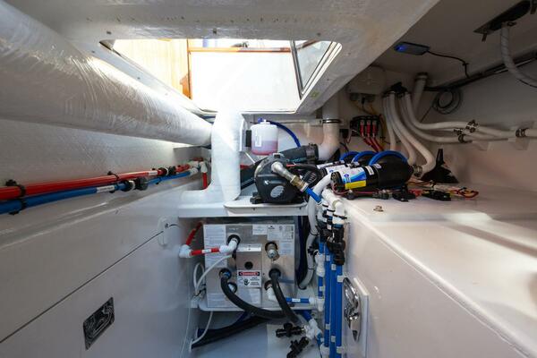 - Sea Frost BD-XP compressor with AEO air cooled system, mounted in port cockpit locker, cooling air ducted through main bulkhead, from toe kick in galley