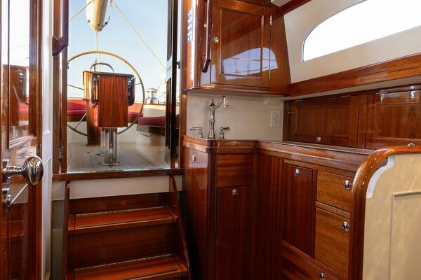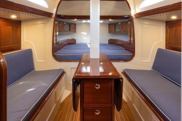 WISP appeals to me as a more modern and more appealing iteration of the Friendship 40’s. Where the Friendship boats fell short, WISP picks up the slack - the performance is not just impressive but surprising - especially in lighter air where her slippery lines, light displacement, and efficient rig really shine. The cockpit is cleverly designed with modern sail-handling equipment to allow for true singlehanded sailing, with all controls easily accessible from a sitting position behind the helm. This is true even for the downwind gennaker and it sets her apart from other boats in this class. What really impressed me was that SWYD managed to squeeze in an inviting interior with standing headroom and enough space and comfort systems that you wouldn’t think twice about weekending onboard - this is rare in a 39 ft SY with classic lines such as this (which often feel much smaller inside than their LOA would suggest). The build quality is exactly what one might expect from a small, pedigreed artisan boatbuilder in Maine.