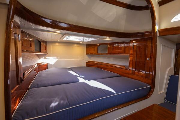 The Moore Brothers two-spreader carbon mast is supported by nitric rod standing rigging. The carbon furling boom is equipped with an electro-hydraulic vang and an integrated jibe-preventer line. There are soft LED lights to provide ambiance in the cockpit.