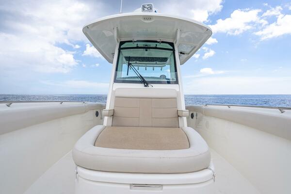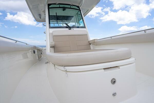 - Forward island deck seating with drink holders (2), bolsters and removable cushions