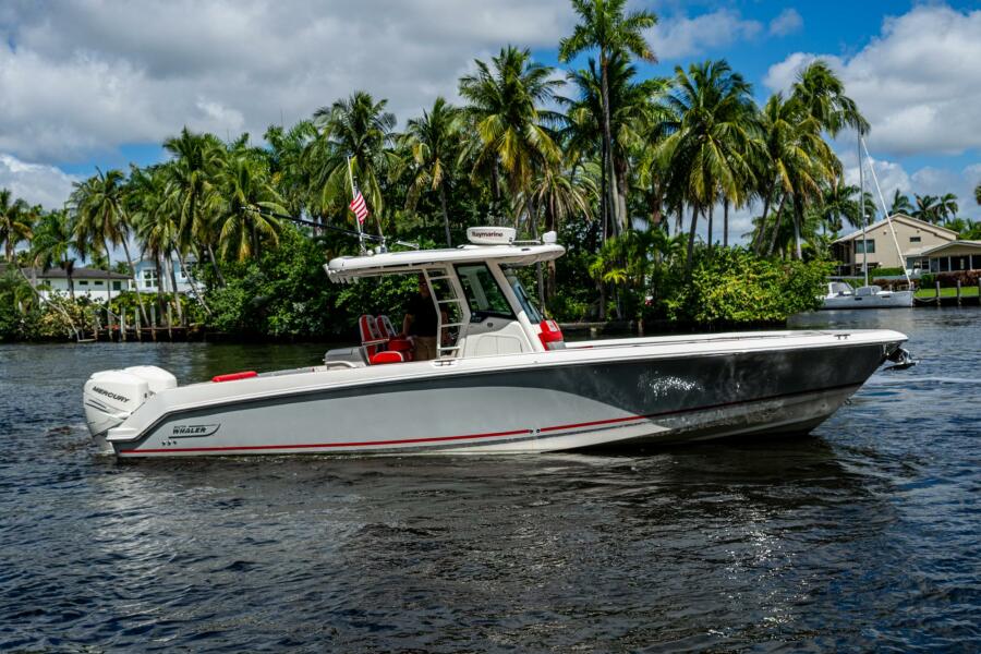 Center Consoles are versatile designs and the SUVs of the boating world. Boston Whaler takes versatility and functionality to a whole new level with those two keys being paramount in their designs. The 33 Outrage is no exception providing an excellent platform to find peace and relaxation whether you're fishing, cruising, diving or any other activity on the water.