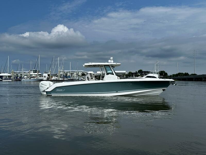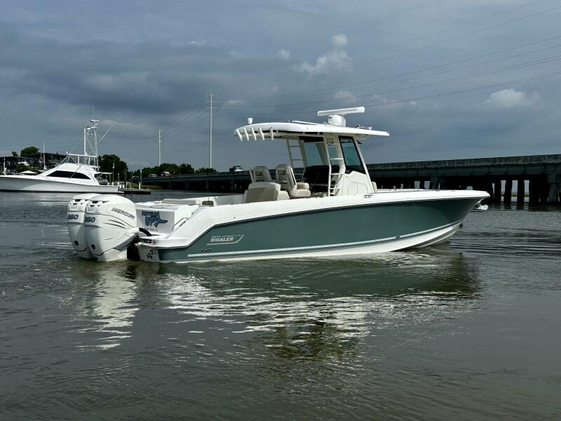 Turn heads and conquer the seas with this stunning 2019 Boston Whaler 330 Outrage, cloaked in a sleek Jadestone hull paint that radiates sophistication and style. Powered by twin Mercury 350 Verado outboards with Joystick Piloting and only 720 hours, this vessel delivers exhilarating performance and effortless control, making every docking a breeze and every journey a thrill. Meticulously maintained and loaded with premium options, this 33-foot center console is the ultimate blend of luxury, versatility, and rugged capability. Perfect for the discerning boater who demands performance, luxury, and unmatched style. Trailer is Available! Contact Zack Petrous today to schedule a viewing and experience this Jadestone gem for yourself!