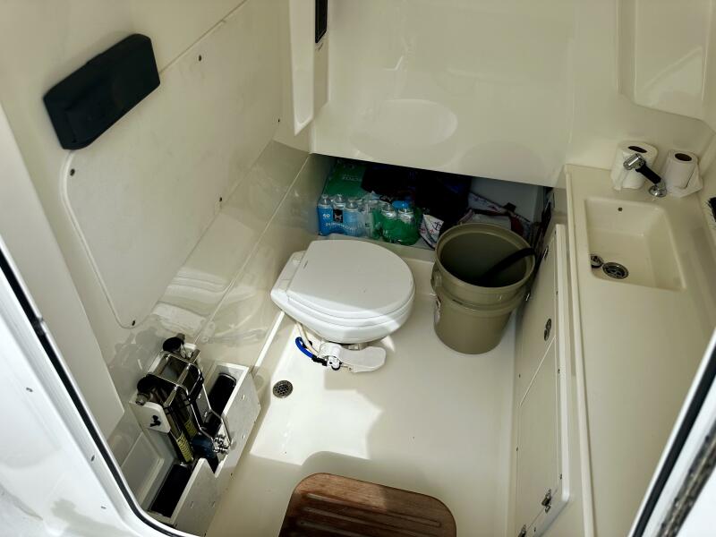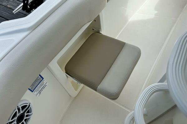 - Port aft storage at fishing prep area (can store a 5 gallon bucket)