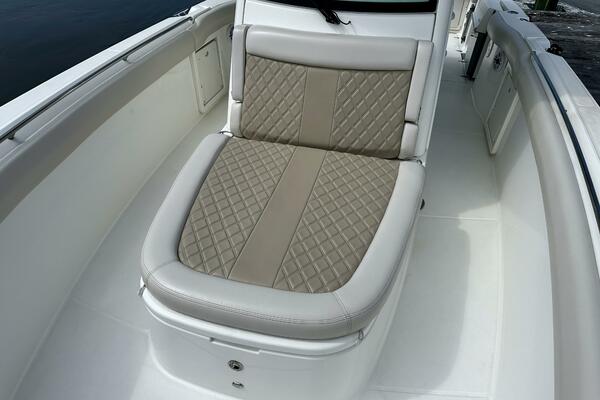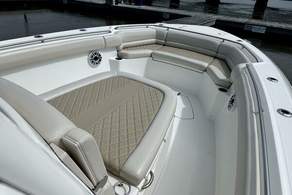 - Forward island deck seating with drink holders (2), bolsters and removable cushions
