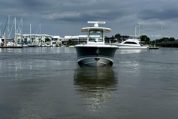 - Freshwater system (40 gallons) with sink in console, transom shower and anchor washdown