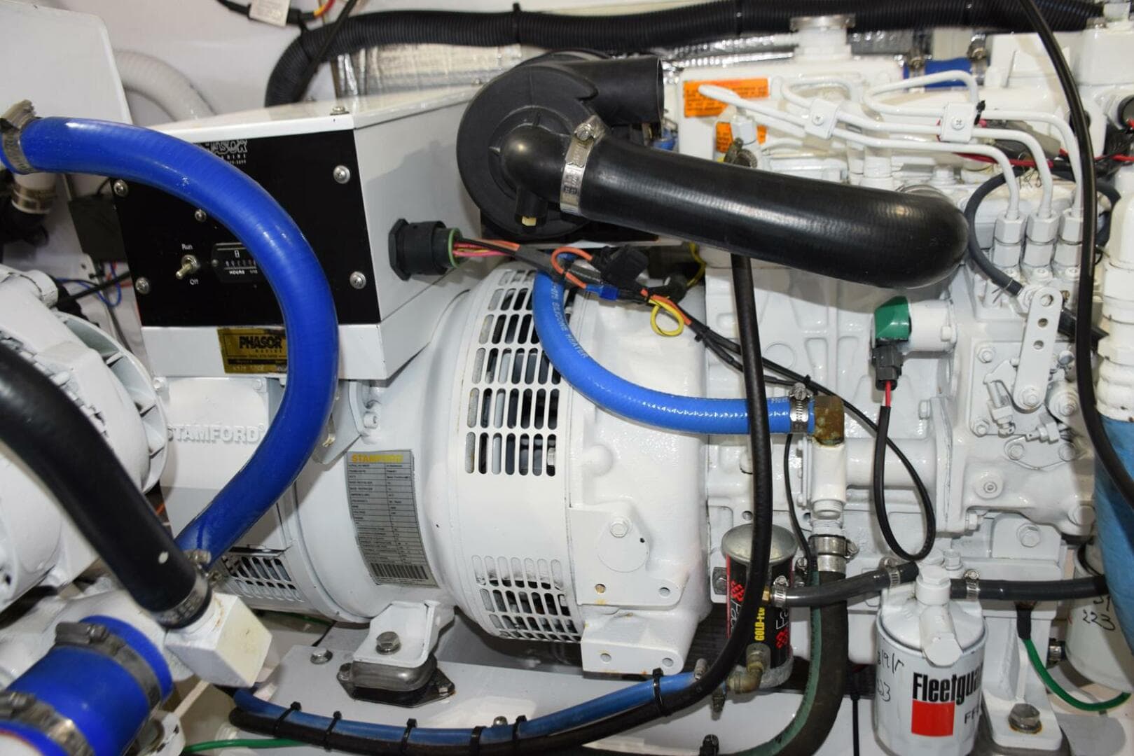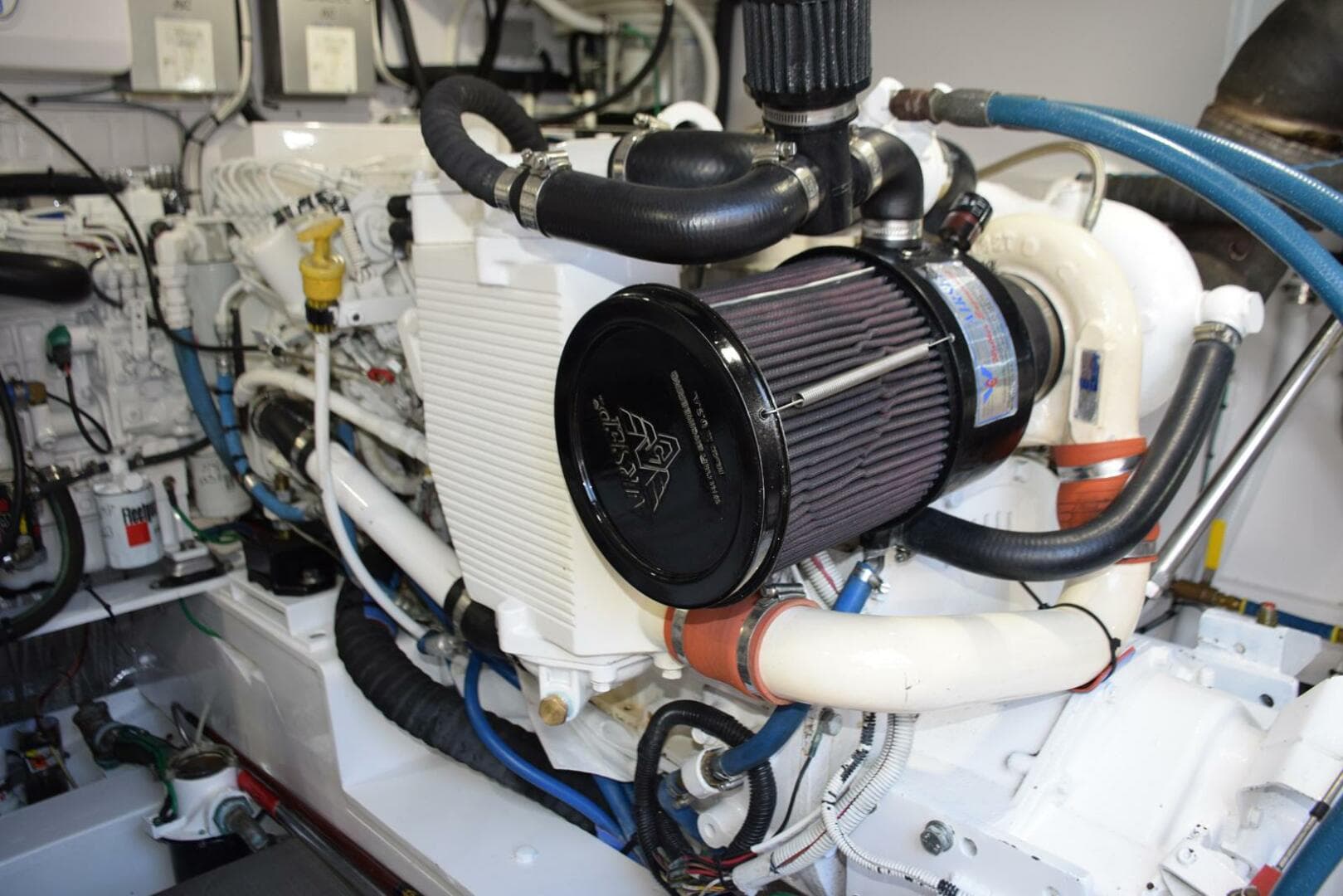 - Dual Racor primary fuel filters, 75900 Max with restriction gauges, for main engines, single Racor for generator